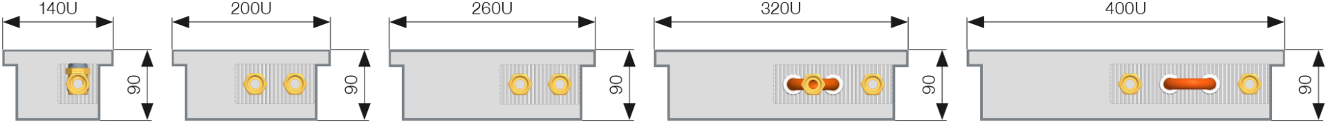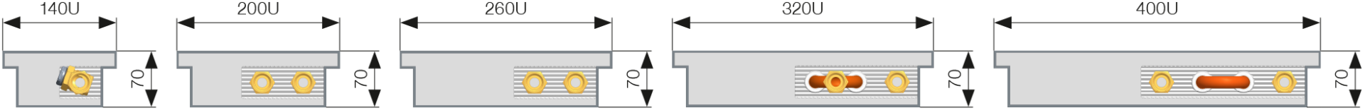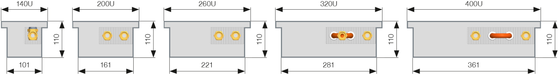 P* – single-stream heat exchangers are fitted as standard in trench heaters 140 mm wide, depth of 70, 90 and 110 mm only.