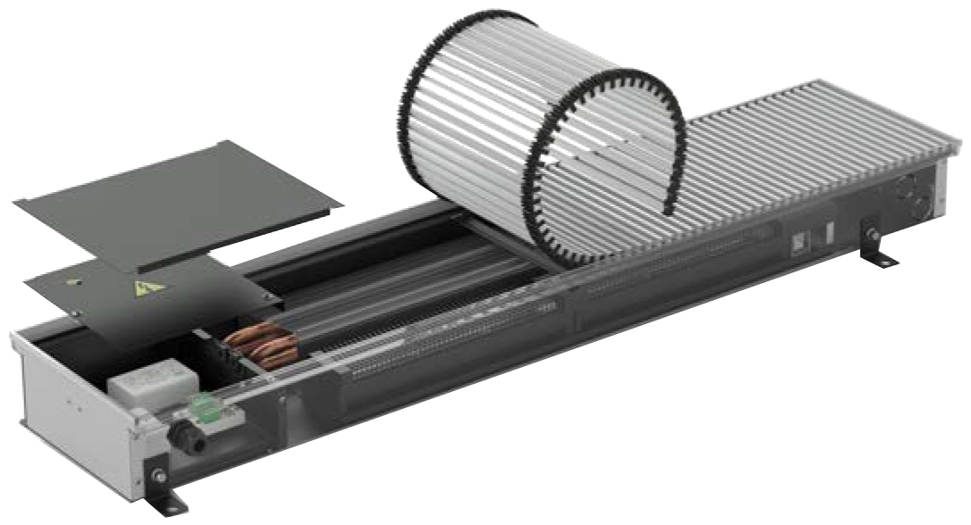 KORAFLEX Energy FVE is based on the Optimal-V range, extended by 200mm and fitted with regulation for 230 V AC connection. Energy 230 V AC trench heaters are suitable for dry environments and are solely for heating. They are characterized by silent operation and can be connected to BMS (Building Management System).