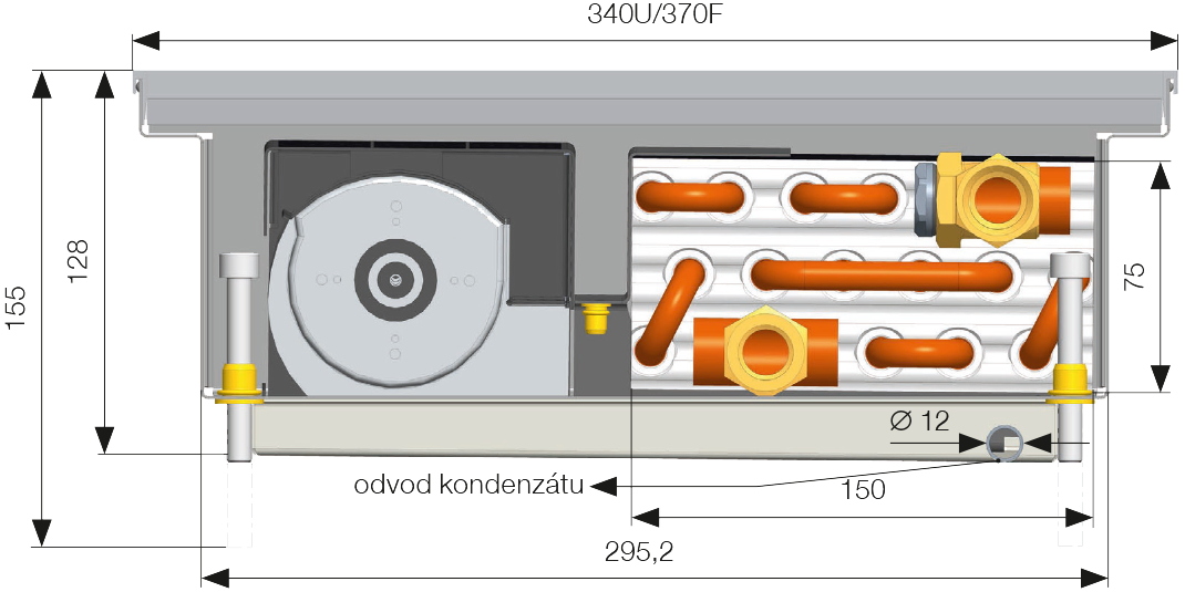 For trench heaters with forced convection we recommend undertaking fastening and acoustic insulation by pouring thin concrete along the sides and under the base of the heater.