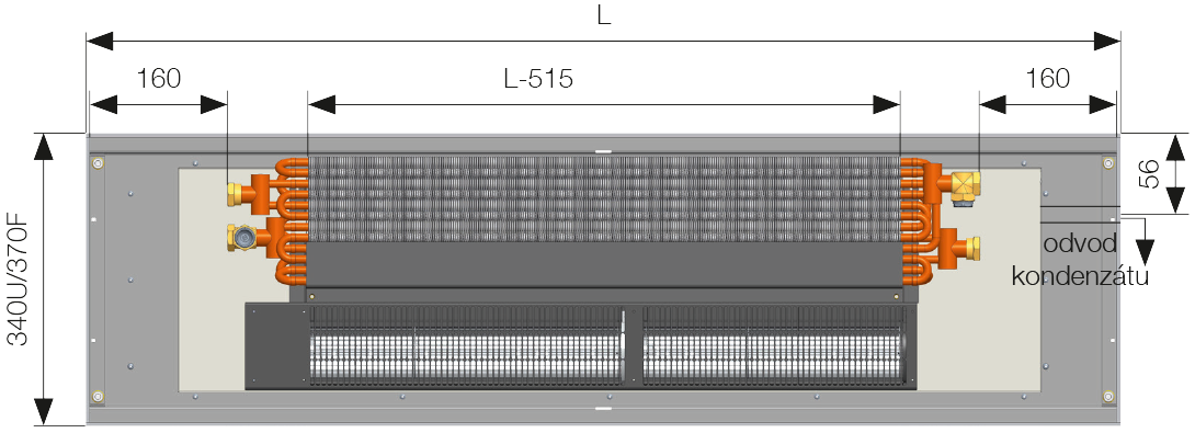 galvanized steel casing RAL9005 black lacquered steel casing, lower AISI 304 stainless steel condensation drainage canal - non-lacquered -