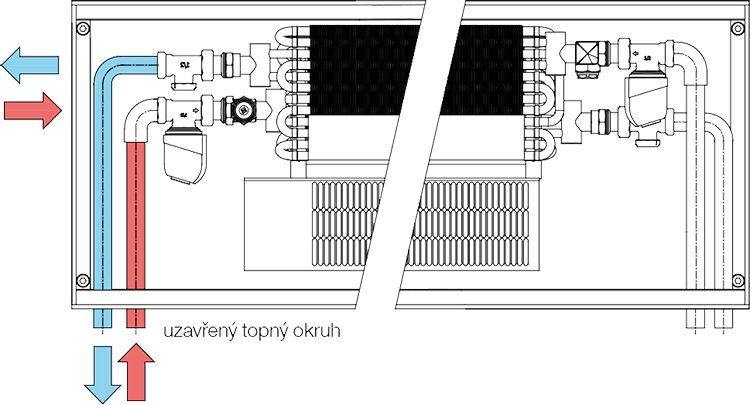 We recommend connecting the trench heater to the heating system using a lockshield and thermostatic valve. The heat exchanger connection is by an inner G½ thread. Following connection to the heating system, bleed and carry out a pressure test.