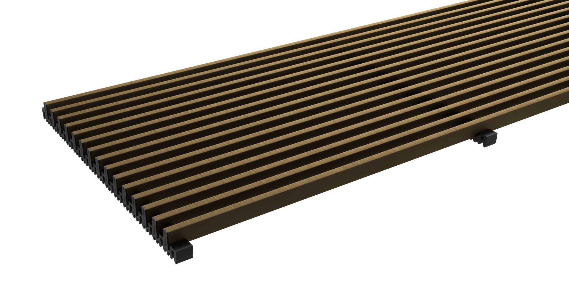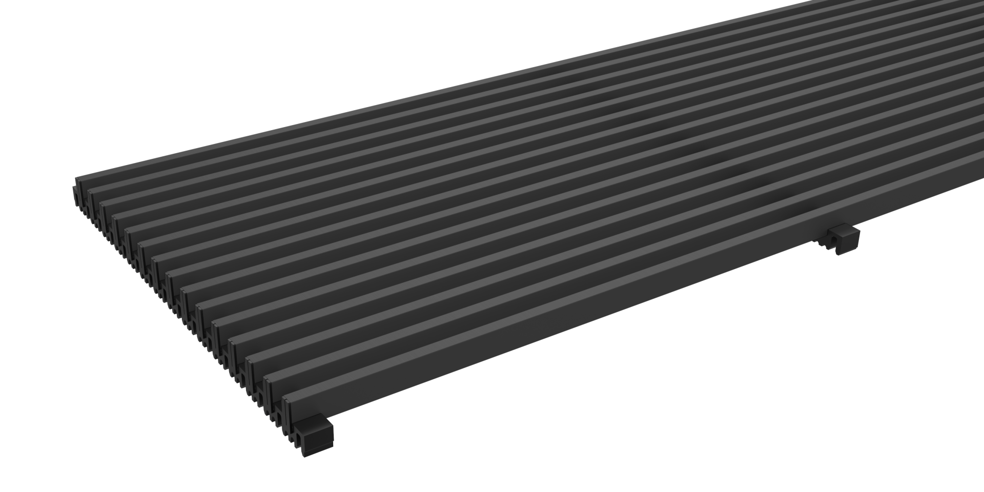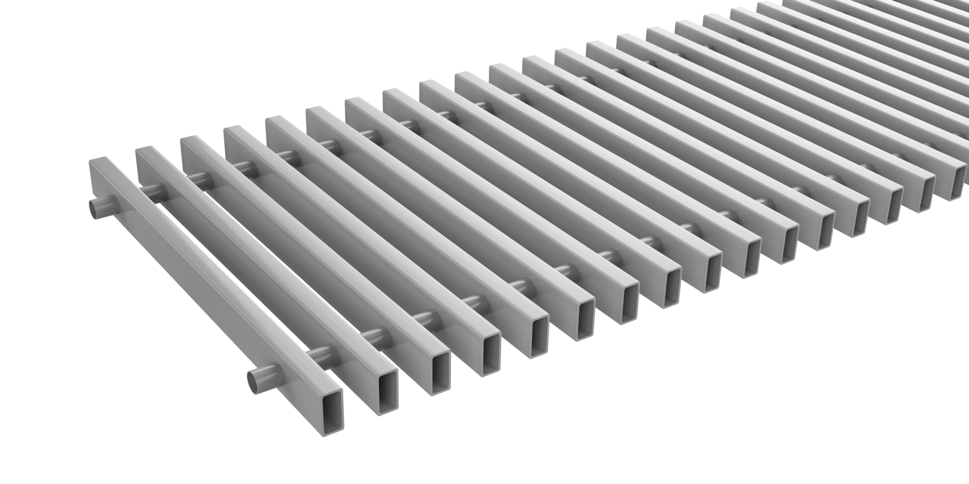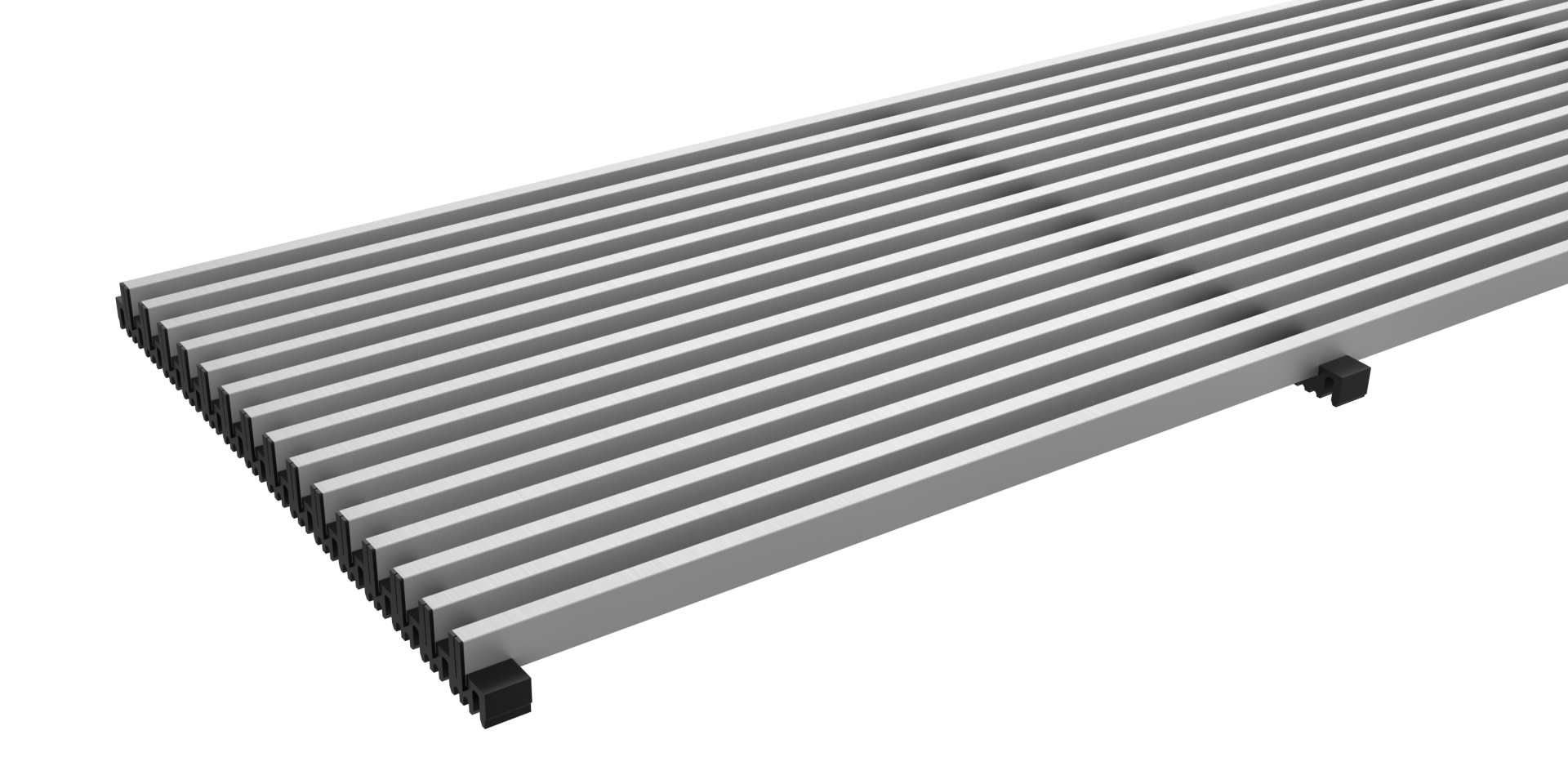 Customized solutions for projects dealing with high raised flooring. This is a more robust model of the higher raised floor support, equipped with two supports at the base of the trench heater. The precise technical design depends on customer's requirements. Recommended for raised floors with a maximum depth 300 mm greater than the unit height of the trench heater.