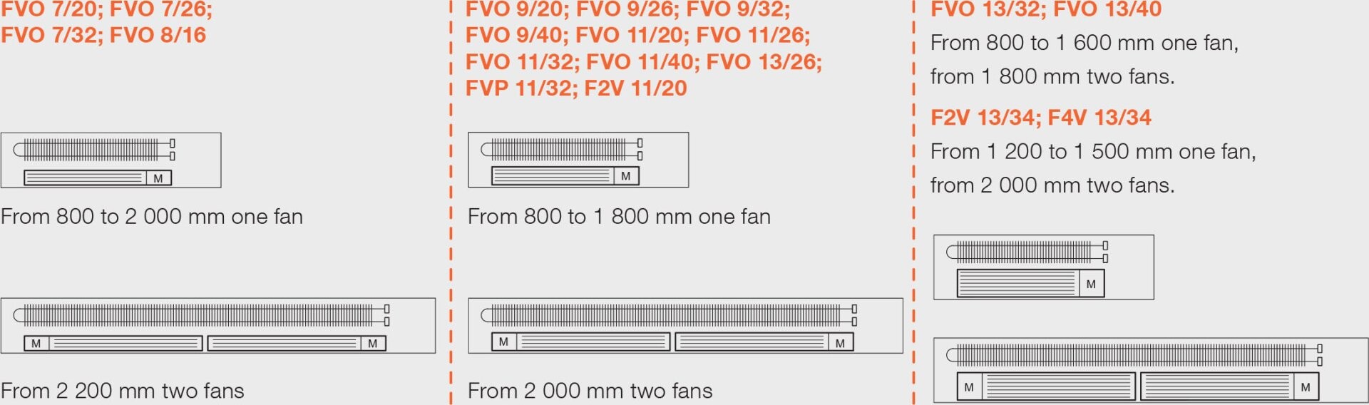 Fans are attached to the trench heater casing using magnets. For stainless steel models velcro is used. This system enables the removal of the fans from the trench heater during installation to avoid damage or contamination, etc. Fans may also be removed this way for cleaning when the unit is switched off. With the exception of the Pool series, fans are installed to direct air towards the windows.