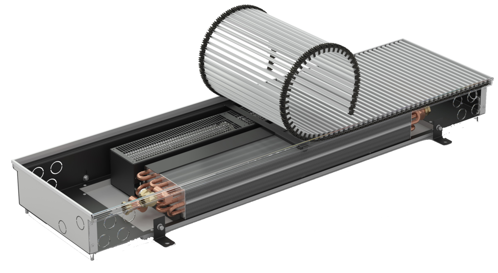 The size of the trough in the floor for the trench heater installation should be at least 100 mm bigger (both in length and width) than the convector.